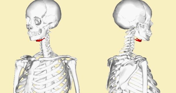 El hueso hioides es uno de los más desconocidos y a la par más influyentes en la zona craneal, cervical y dorsal, teniendo por ello, un papel fundamental en el movimiento de la cabeza, cuello, tórax, mandíbula, boca, lengua y en funciones tan importantes como la masticación, deglución, fonación(1–3). El hueso hioides es un hueso impar, medio, simétrico, ubicado en el adulto, a la altura de la tercera y cuarta vértebra cervical (4). Forma parte del complejo hio-gloso-faríngeo, prestando inserción a estructuras provenientes de la faringe, la mandíbula y el cráneo(5). Macroscópicamente tiene la forma de U, y es convexo por delante y cóncavo por detrás, formado esencialmente por cinco partes: el cuerpo y cuatro prolongaciones laterales, dos a cada lado, los cuernos mayores y menores (6,7).