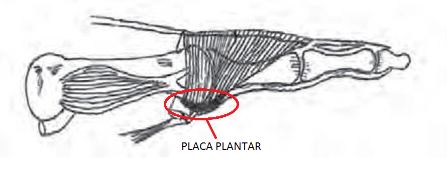 Consiste en la rotura parcial o total de la placa plantar, lo cual provoca la inflamación de la parte posterior de la articulación metatarsofalángica. Los principales factores que aumentan la presión/tensión en la placa plantar, y que conllevan a su ruptura son: